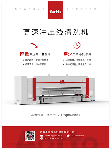 高速沖壓線清洗機主要用于汽車鋼板沖壓前的清洗工序,經過清洗后的鋼板不僅能去除表面的灰塵雜物,還能在其表面均勻地涂上一層防銹油膜,從而增加鋼板沖壓成型時的潤滑性,提高板料的沖壓質量。